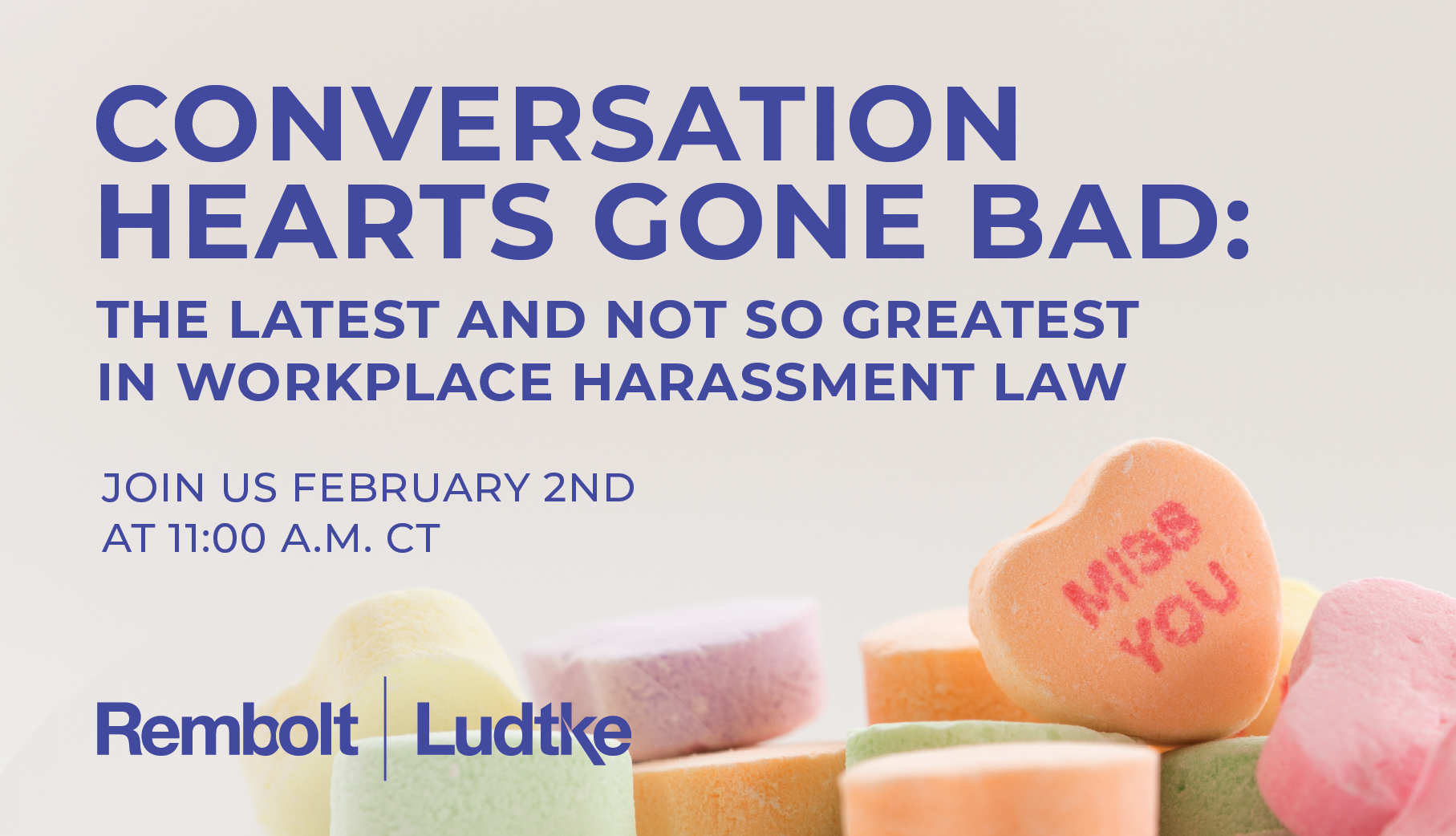 With Valentine’s Day quickly approaching what better time to revisit the legal issues surrounding sexual and other forms of harassment in the workplace. What constitutes unlawful harassment? What does the law require of employers once put on notice of a claim of harassment? What about anonymous complaints? What’s a “love contract”? For this month’s edition in the First Friday Webinar series, the Employment & Labor Law attorneys at Rembolt Ludtke will discuss recent legal developments in sexual and other forms of unlawful harassment as well as the steps your organization can take to avoid becoming the target of a harassment lawsuit. Join us at 11:00 a.m. CT on Friday, February 2, 2024, to learn more.