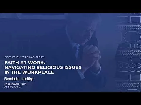 The Trump Administration’s Equal Employment Opportunity Commission (EEOC) has “renewed its commitment” to enforcing Title VII’s prohibition on workplace discrimination based on religion, including the requirement that employers reasonably accommodate employees’ sincerely held religious beliefs and practices unless doing so would create an “undue hardship.” In this edition of the First Friday Webinar series, the employment and labor attorneys at Rembolt Ludtke will review recent court decisions, EEOC enforcement initiatives, and emerging accommodation issues affecting workplaces across the country. The webinar will highlight practical steps employers can take to respect religious expression while maintaining compliant workplace policies and will provide guidance on handling religious accommodation requests and managing sensitive workplace situations. Join us on Friday, April 3, 2026, at 11 a.m. CT.