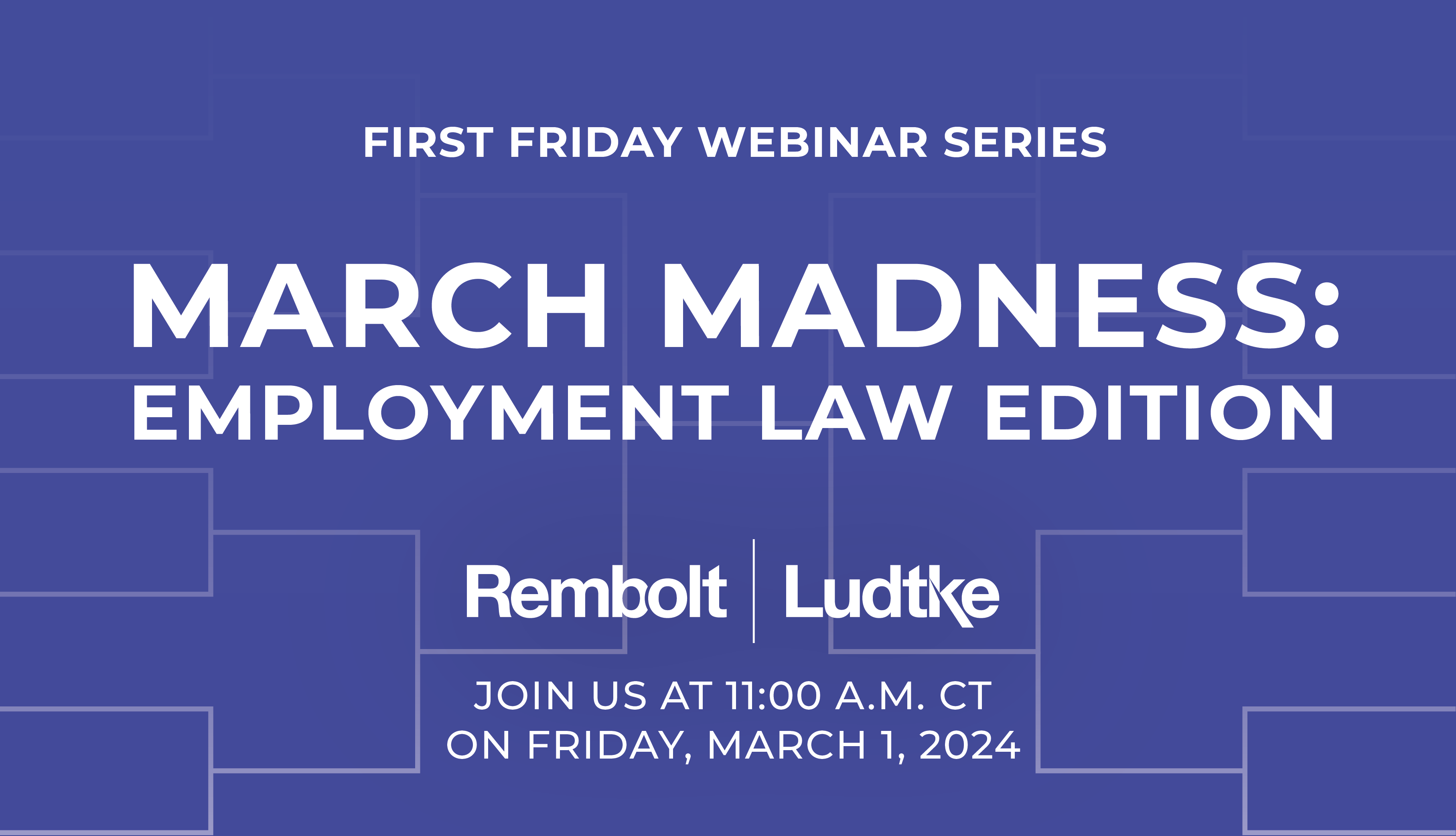 Join us for our Employment Law Webinar Friday, March 1st at 11am for March Madness—Employment Law Edition. We have 8 fictional teams ready to put their HR skills to the test. We’ll discuss various scenarios and learn which teams handled them correctly to make it to the next round. View the full bracket, or make your best guesses below!