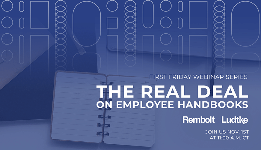 Do organizations really need an employee handbook and, if so, why? Why are certain policies worded the way they are? How can employers get into legal trouble with poorly drafted policies? How often should employers update and republish their handbooks? In this month’s edition in our First Friday Webinar series the employment and labor law team at Rembolt Ludtke will provide the lowdown on employee handbooks and policies, explaining the purpose behind certain policies, the legal risks that can arise and recommended best practices. Join us at 11:00 a.m. CT on Friday, November 1, 2024!