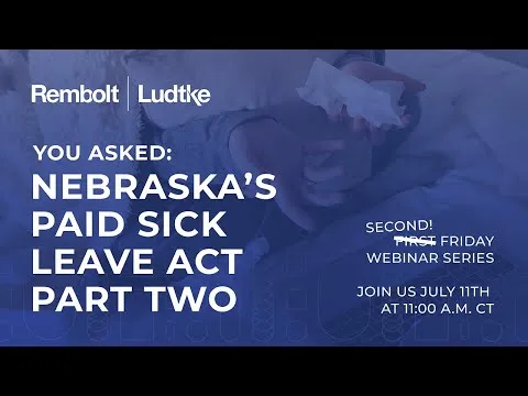 Since the June 10th webinar, the questions haven’t stopped—and we’re here to help answer them. Join the Employment & Labor Law team of Rembolt Ludtke on Friday, July 11th at 11:00 a.m. CT for the next edition in our First Friday Webinar series (rescheduled for this month because of July 4) as we follow-up on our prior webinar, address the most common questions and clarify the nuances of this important new law that goes into effect later this year.